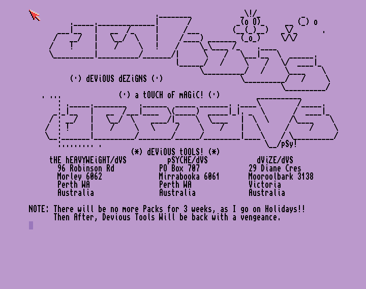 Features A-START! v0.5b (23.2.1996) by voidParrot Software released by Brains, Amiga Report #406 (textfile), BlitzDms 1.01 (17-Apr-96) by Anthony Brice & Paul Juhasz/Binary Software, HDClick 3.0 cracked by The Advcocate, iBrowse R6, MegaDMS v1.05 (16.03.96) by Stephan Buelling (registered by Sunbeam/Apex), Slam Tilt A4000/040 Fix, TelSer 1.40+ KeyfileMaker bY RTM/dECiSiON (04-28-96) and (Yet Another Mailer) Version 1.0 (20-Feb-96) by Marcel Beck.